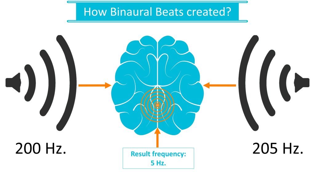 Binaural beats are created in a process where a sound is played to the patient in each of the ears, when there is a small difference between the sounds (one sound is slightly higher than the other).
